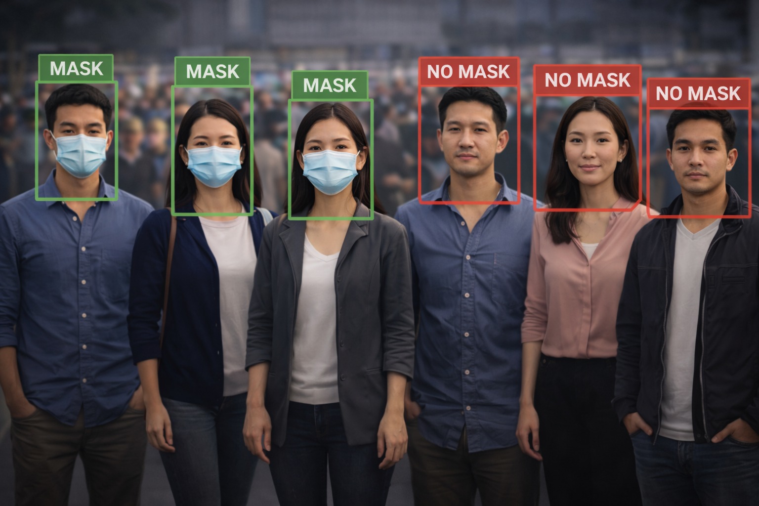 Face Mask Detection System Face Mask Detection System uses existing IP cameras and CCTV cameras combined with Computer Vision to detect people without masks.