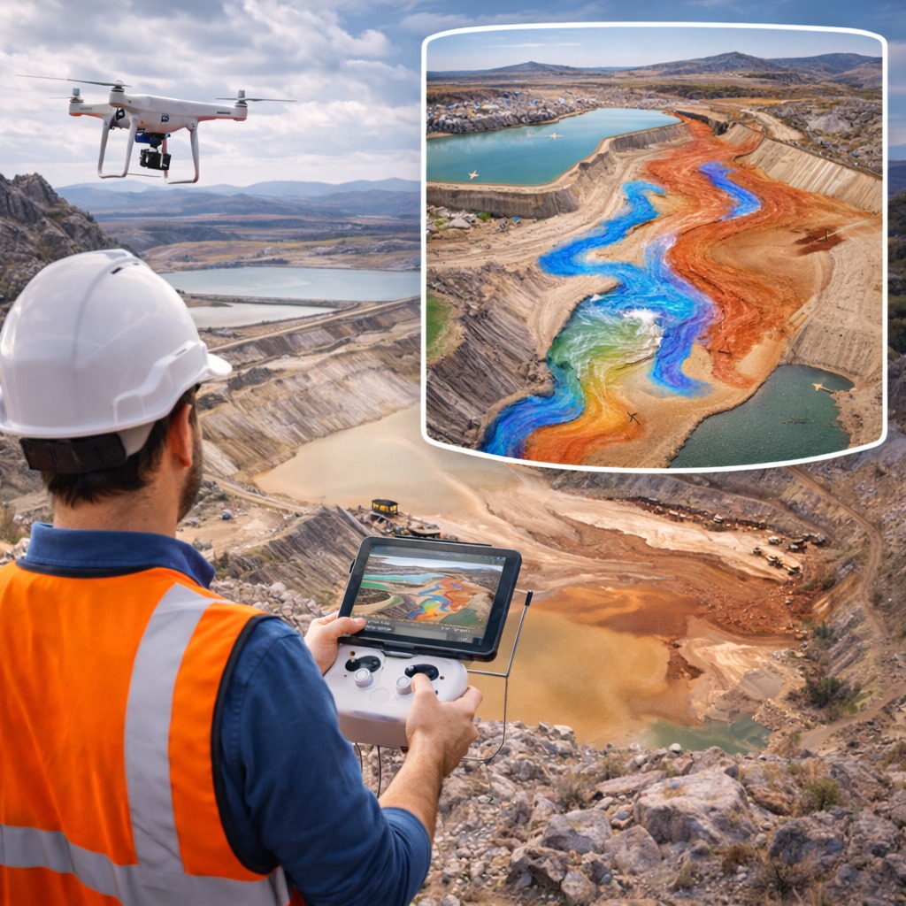 Water and sediment flow Drones in mining can also help prevent operations disruption due to unwanted or uncontrolled water or sediment flow. Flow and tailings